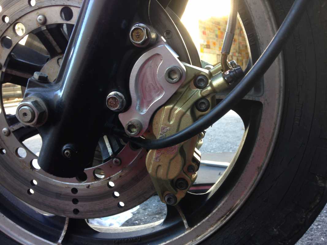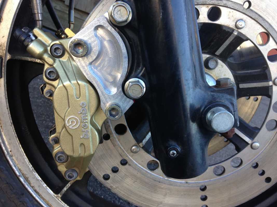 Here are the photos that Nikola sent me on his Brembo upgrade. Looks like some sort of custom adapter plate to mount the calipers. If info on them aren't readily available I could contact him and ask how he did it or where he got them