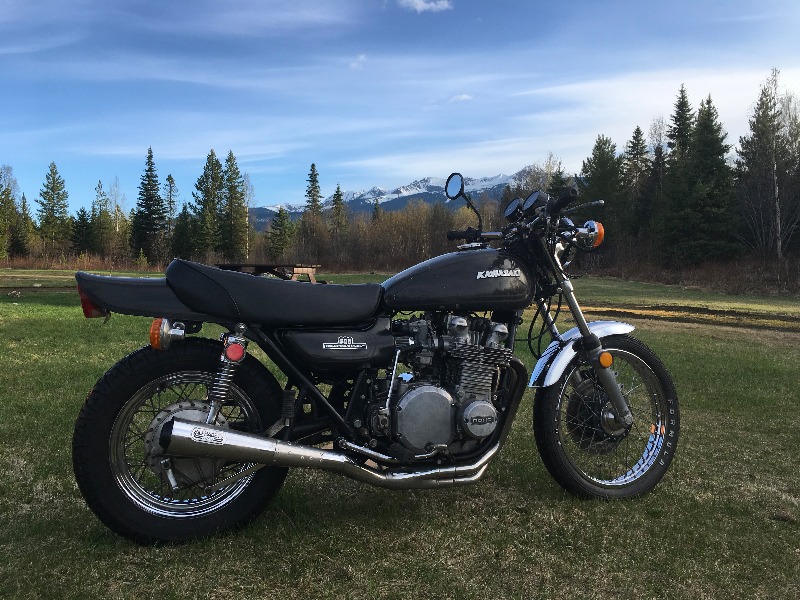 Thanks, Exhausts are done 2 x 3 into 1 So far we have used some header pipe from 1986 ZX1000, and aftermarket cans from the same ''F1'' brand. Currently waiting for clutch plates, cable and front brake parts. i have all the old parts i need, bar a front fender. l do like a Rat bike, makes a nice change in a afternoon