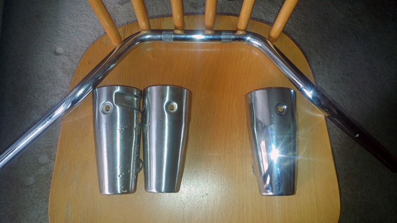 Got one of the covers and a handle bar today! This cover is great. I don't even have to chrome it! I might attempt to make the other cover out of the two on the left. OR, it crossed my mind, I'd keep it as is for the memory where this bike project started and attach engraving saying it's been done by me. Unless I'd find one off eBay and keep it as spare to complete the list of original parts.