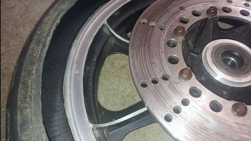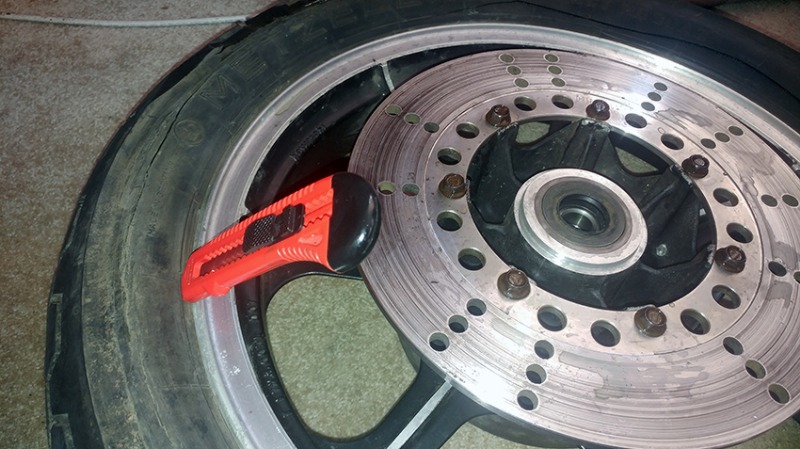 Removing old useless tires revisited. This time the rear tire, heavier than the front, and a new technique. Much easier, safer and faster.