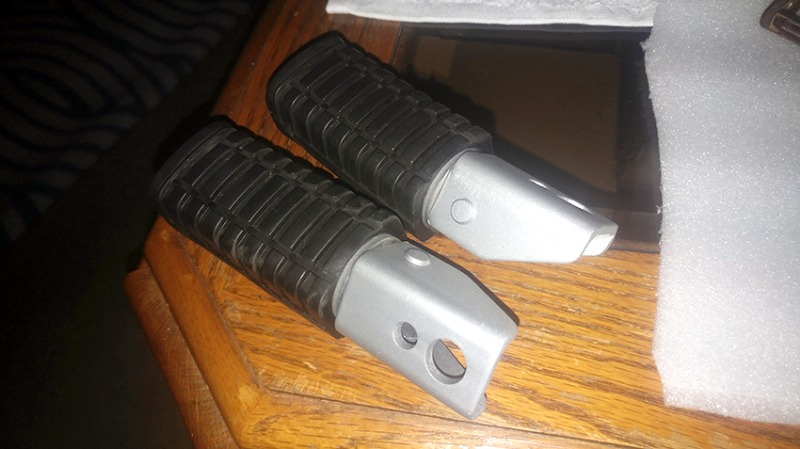 Those recently restored parts of yours look beautiful. The foot pegs remind me of those on my Yamaha XS Eleven. The difference is that the foot peg on yours pivots on a pin which is retained by a split pin, whereas the pivot pin on mine was riveted over. So I drilled the pins out, and replaced with a chromed socket screw with a dome nut. If all that makes sense!