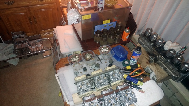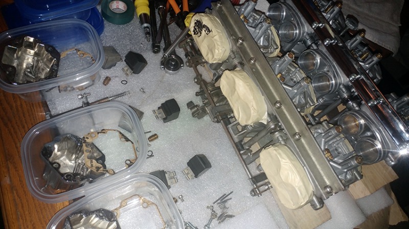 Got to the carburetors. But first, my crazy corner of KZ1300 love. This is where things happen. This setup is very temporary - things are being moved around as they are being fixed!!