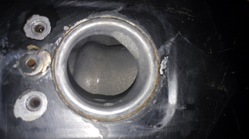 Few pictures of the sealed inside gas tank. It's a thin but very durable layer, hugging every corner and imperfection. POR-15 instructions say that it can be poured over any flash rust and will seal pinholes and any small leaks, and whatever rust is left (which is neutralized after the treatment). But I decided to have the tank completely stripped from any rust. That's the way to go in my opinion. First use vinegar, as it is cheap, then the POR-15 solutions to finish the job properly.