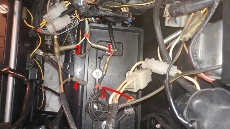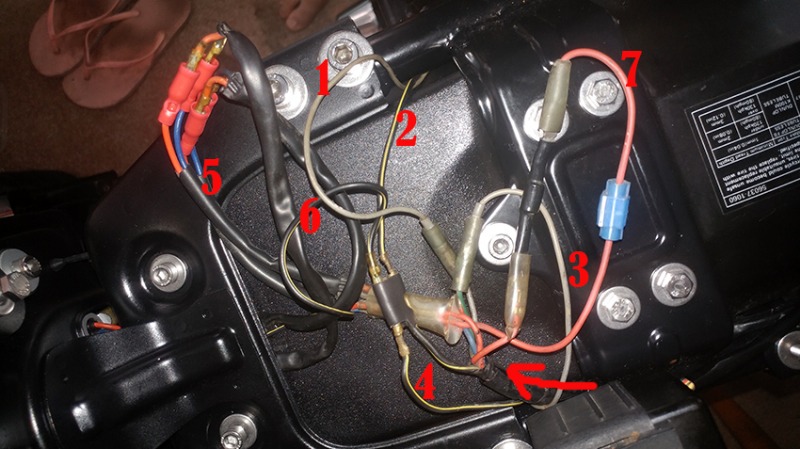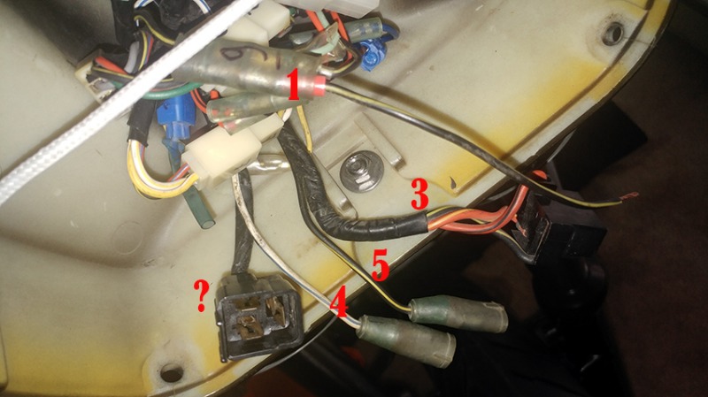 The front - I have an idea but need opinion about hooking up the turn signals. The headlight is #3, the rest I think the signals. Except the '?' which I don't know what it is, but I suspect it goes to a fairing with extra goodies. Front signals have 3 wires - 2 +1 ground. Here, #4 and #5 would make sense + the #1 as supposed ground, but both 5 and 1 have the same color pattern, confusing me.