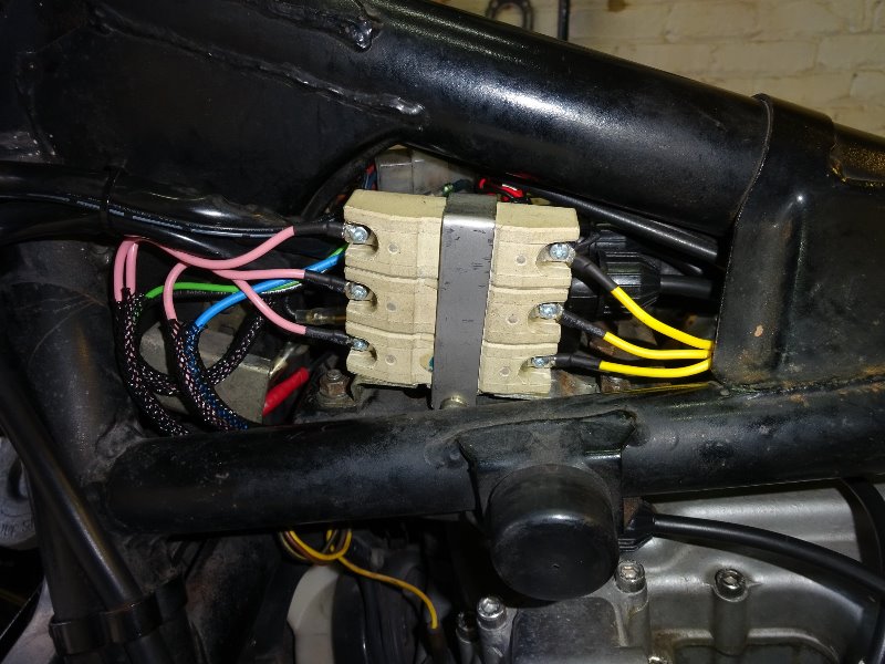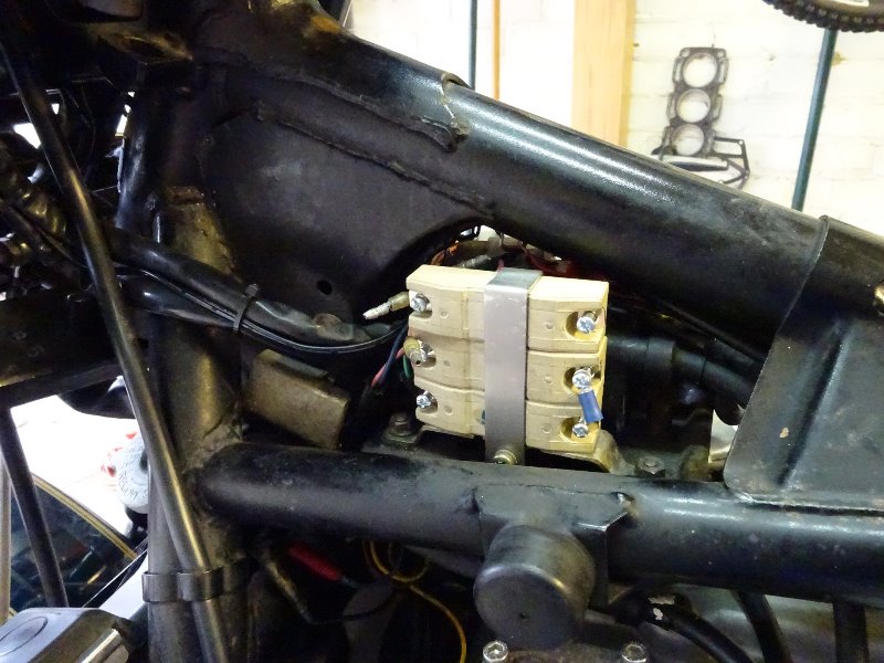 Yes, I did think about insulating the terminals but I could not think of a good way to do it. It would need to be very heat resistant as well as an insulator. I also needed to avoid anything too bulky as there is not much room particularly around the back end of the resistors. I was also aware that they are not insulated when used for their primary automotive application. The terminals are recessed into the ceramic block so unlikely to contact the tank or frame.