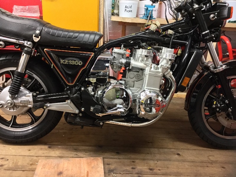 Almost there. Just waiting for a few bits to finish. Off next job is take the handlebars off and fit a temporary pair to enable me to get it out the workshop and down the side of the house. Looking forward to the weekend to try and get her up and running.