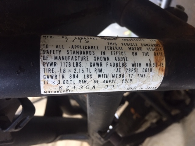 But the label on the frame gives me (besides a different frame number than on the import paperwork - that will be interesting!) the date of manufacture as being 7-79. So although from 1979, mine is actually an A2 model!