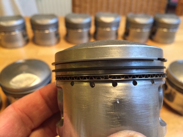 Here they are with the rings on, ready to go into the engine.