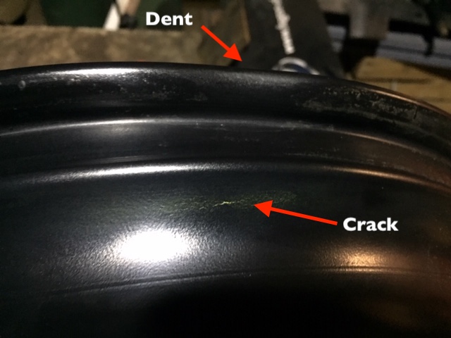 Setback today... I found a great front wheel from a Benelli Tre K Amazonas - one that went with the forks I got. However, upon arrival there was a small dent in the rim, and when I took the tyre off a crack appeared as well... I did not see it, but the guy looking at repairing the dent did spot it immediately.