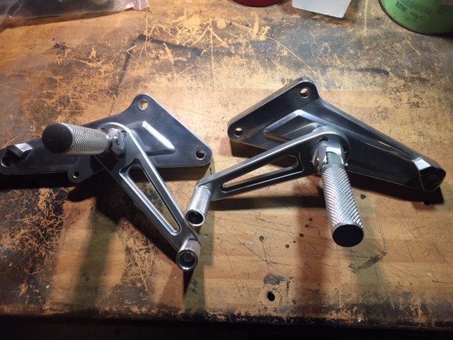 Once drilled and everything fitted, I took them off and polished them to see if they would come up as shiny as the new rear sets. They did! What a difference a little polishing makes!
