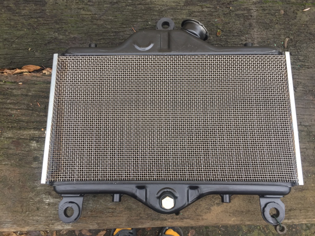 I repaired, cleaned up and painted an old radiator and also got a fan, which needed some tlc to get working again. I fashioned a grille from some copper mesh I found and is looking quite cool. The old chrome and rubber surround had been cut off so I can't use anymore, no matter, I think my own design is nicer... but still not 100% sure about it. I'll decide later.