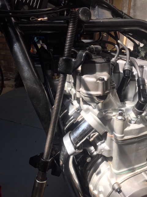 Main issue was that the pipe was welded to the collector box (not by me!) and it was a few mm too short. This meant the collector box is tight agains the rear of the oil sump. And that also means I cannot get the rear fixing bolt in as the two holes do not align. As it is temporary I have secured with a piece of coat hanger - it won't come loose. At least now when I have the air box fixed I can have a go at trying to start her up!
