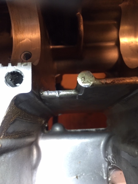 7 years 3 months agoQuestion- On the lower crankcase half there's a web behind the 3rd and 4th main bearing. Is that a nick I see in the web that might have been made by the primary chain bumping up against it?