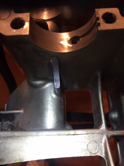 7 years 2 months agoQuestion- On the lower crankcase half there's a web behind the 3rd and 4th main bearing. Is that a nick I see in the web that might have been made by the primary chain bumping up against it?