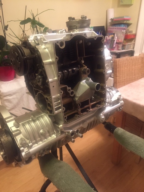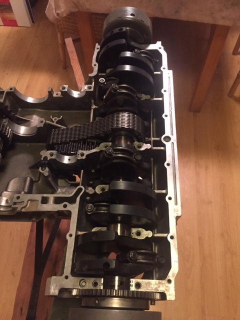 Then the crankshaft with the new drive chain can be dropped in (gently)