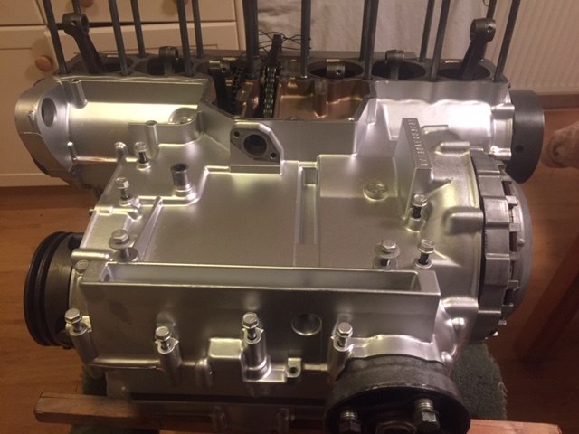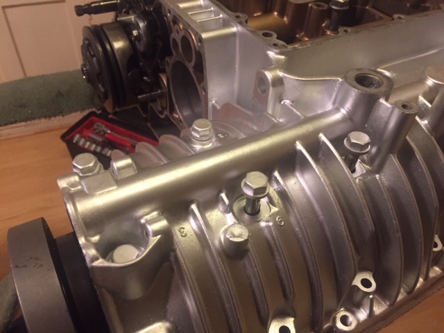 Turn the engine over (nearly dropped off the rack - I forgot how heavy it is with all the gubbins in!) and insert and tighten the rest of the bolts