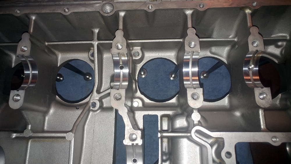 The little hole next to the journal in the middle is how the oil dripping hole looks - that one in the middle of the cylinders, when looking at the outside of the top case.