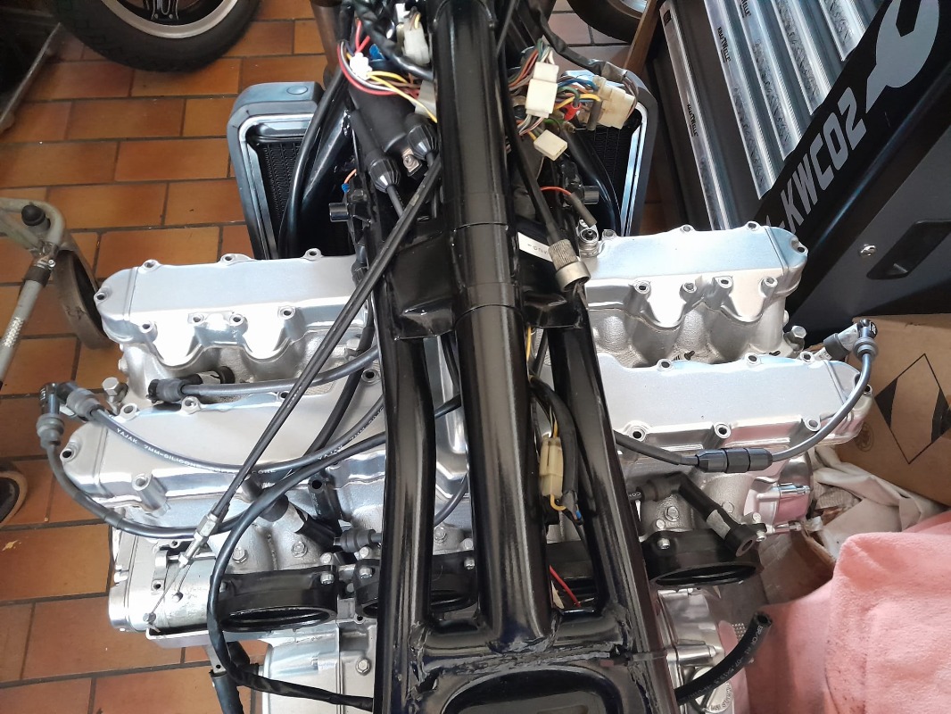 It would be interesting to know how he went from 120 deg. firing to 90 deg. firing. Custom camshafts?? And how did he rework the crankshaft?? It's hard to tell how the crankcase was married up. Looks like really good work.