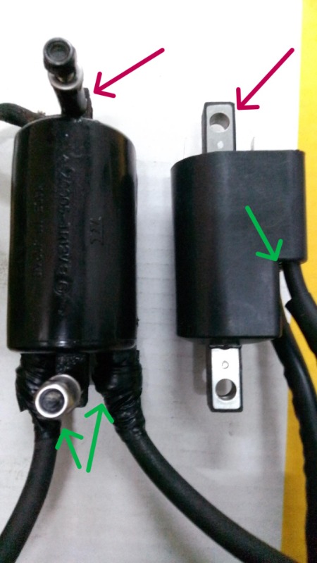 For example: in the coil fed with the black wire, which output wire must I connect to the spark plug of cylinder 1, both are the same.