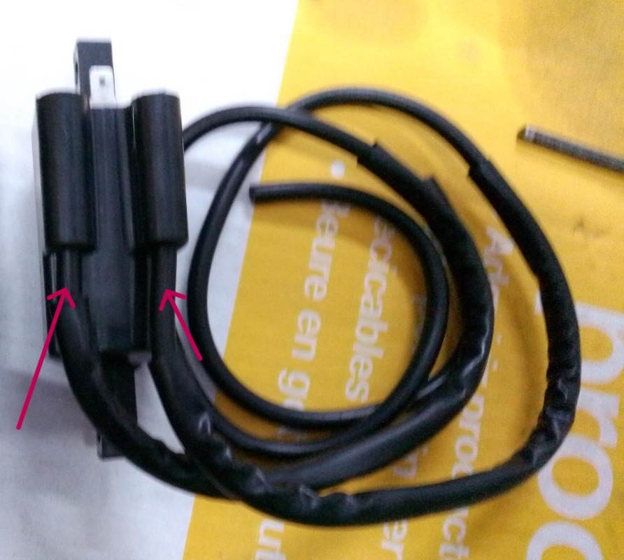 Now, the original coils are housed with the exit of the cables that go to the spark plugs parallel to the engine, that is, the two fastening screws perpendicular to the exit of the cables that go to the spark plugs.