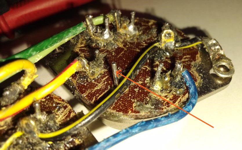 I marked the different pins of the transistor with colored arrows.