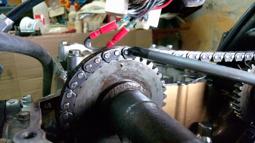I reassembled the chain tensioner, then removed the spark plugs and activated the starter motor without noticing any strange noises.