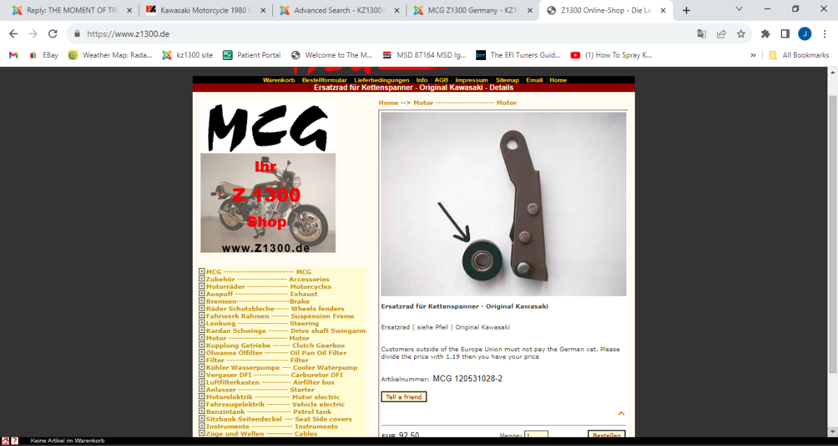 Screen shot from www.z1300.de showing the tensioning wheel they sell.