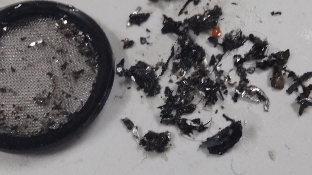 Today I filtered the oil I had drained from the engine crankcase after riding a whopping 15 km.