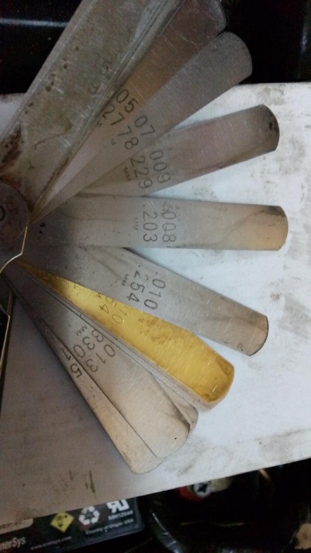 After draining fluids, removing the radiator, coils and cylinder head cover, it occurred to me to take a set of gauges and measure the space between the distribution shaft and the valves.