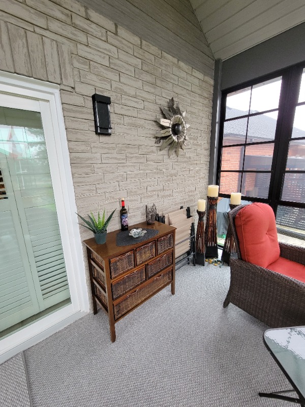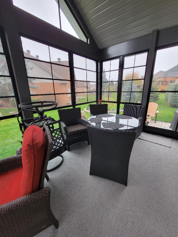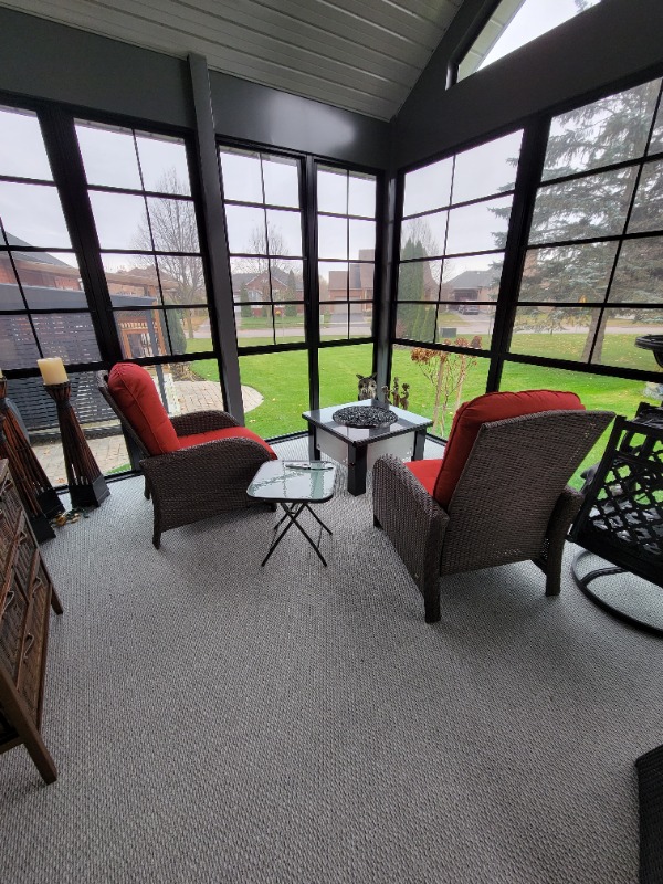 All I can say is the 3 season room is done for now. I still have to replace one of the 12 windows because a frame got damaged during shipping from the manufacturer in South Carolina. The wife is happy and that's all I need to hear, so now I can move on to working on the bike again. THANK YOU GOD !!
