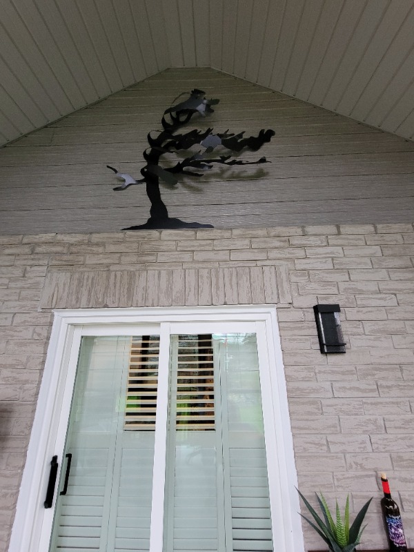 Pat saw this metal art in the Muskoka's and said she just had to have it for the sunroom. The price, ....$1100. I said "Really" I could make that for under $100. She doubted me which of course Goaded me, so I bought a 4 x 8 sheet of carbon steel 14 gauge , took a picture of the "Whispering Pines" and made one for her.