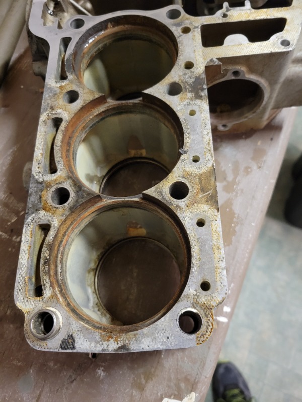 Just working on cleaning up the cylinder block before reinstalling the cylinder liners. I don't know if anyone is interested in how I clean up gasket surfaces, but I'll go through my process and you'll see why in the pics.