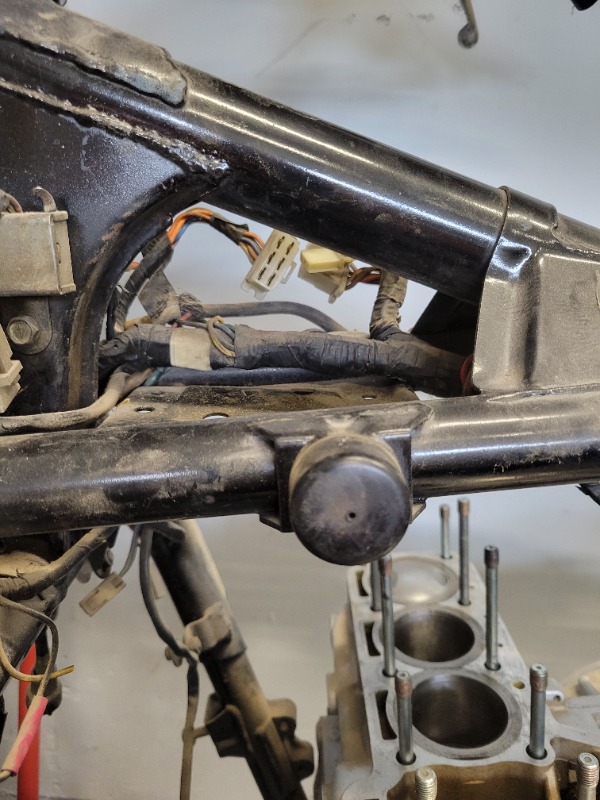 So I pull the seat and the fuel tank off the bike and start looking at pulling the cylinder. Now I have to mention that for the past 10 years, the head has been off the bike and a plastic bag taped down over the open cylinders and I fully expected to find surface rust in the bores but to my surprise - spotless!!!