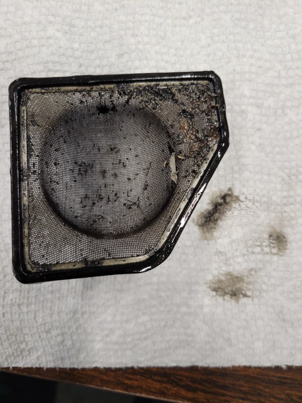 Pulled the oil pick up tube and removed the strainer. All things considered next to nothing for debris on the strainer screen. that's what we like to see.