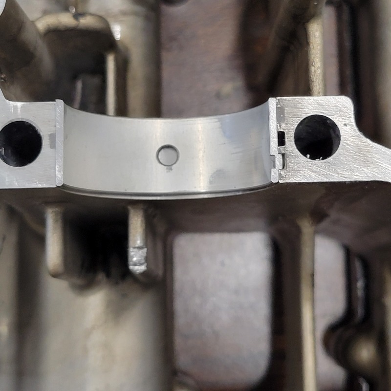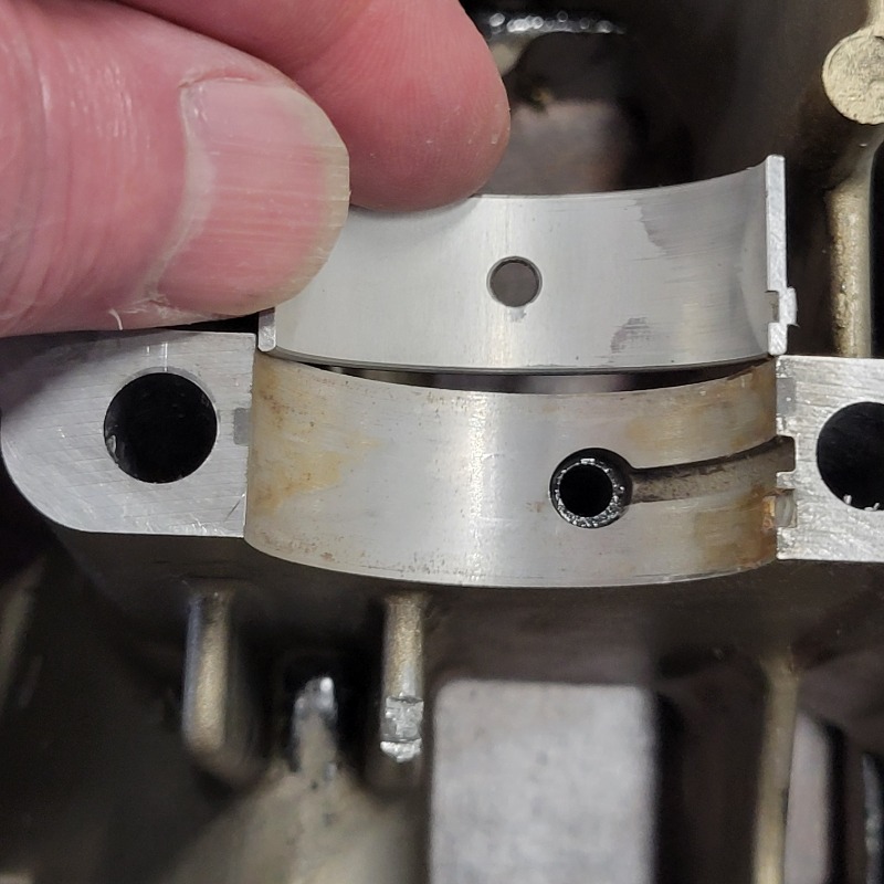1.) All the plain bearings on the upper half crankcase fit nice just like you would expect BUT all of the plain bearings on the lower half crankcase sit proud of the half joint on 1 side by enough to catch your fingernail on, so maybe .003" - .004" ? I checked everything trying to figure this out. Crap behind the bearing shell? Nope. The only thing that I can see is that the locking tab that fits in the notch in the case to keep the bearing from spinning has aluminum crud and crankcase sealer built up in the notch and MAYBE it's not allowing the bearing to sit fully. I'll be looking at it again tomorrow. Sometimes I find it best to walk away and approach problems later and sometimes the problem reveals itself, so .......
