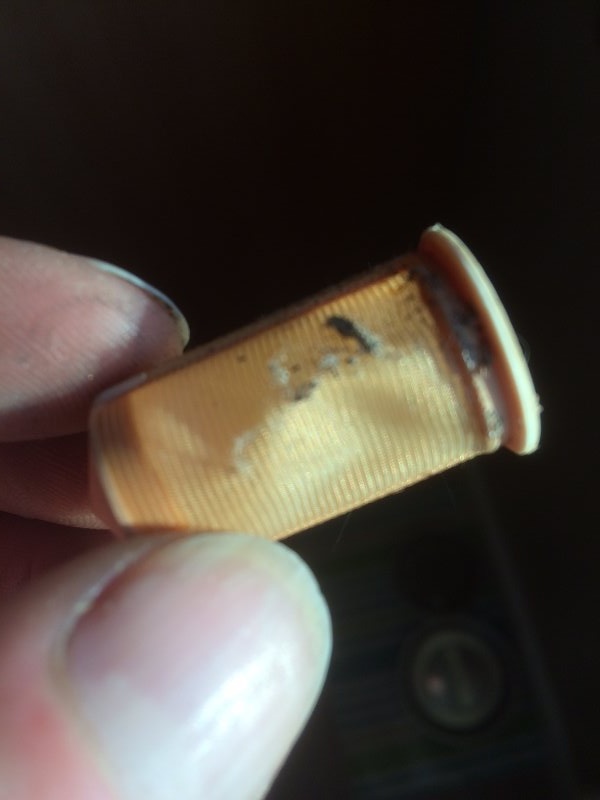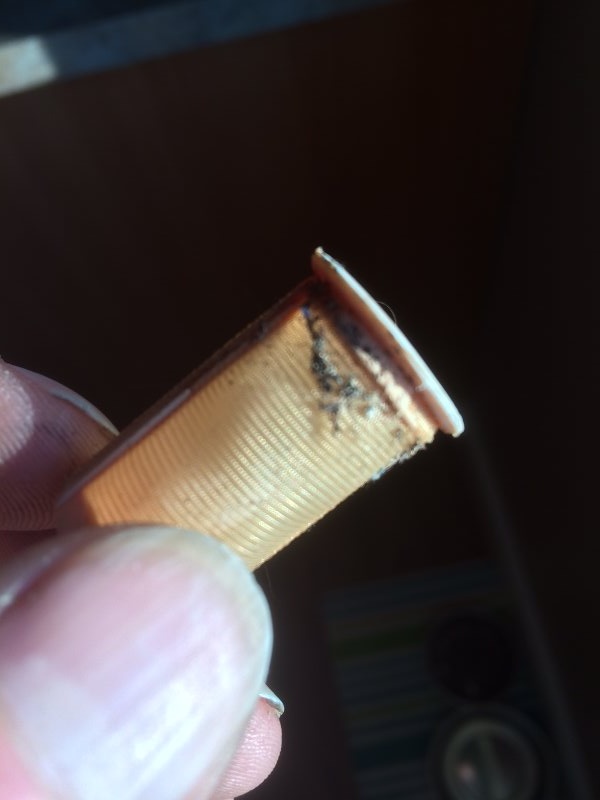 1) The filter mesh was intact 2) The CRAP was located at the open-end of the mesh - typically this is the "delivery-end" of this filter design. 3) I then have a somewhat embarrassing epiphany! The filter was installed backwards ! This particular filter is about 2+ years old and was removed last year at which time I flushed it out with Lqr thinner and blew it out with compressed air. I inadvertently installed it reversed. So for the first year+ it filtered as it should but installing it backwards now allowed the CRAP to be free to go to the carbs. Given the "Fuzzy" nature of the CRAP, for the most part it remained "stuck" to the mesh but obviously some of it did not.