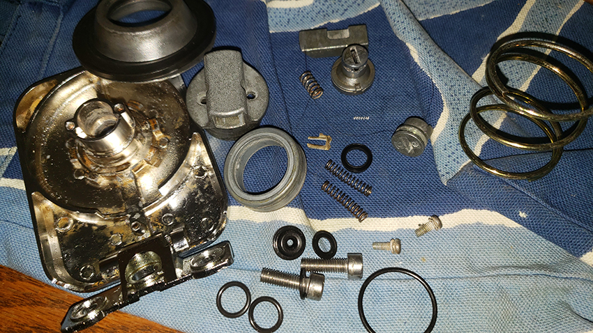 You must be very careful when disassembling the fuel cap as there are two paper thin and brittle gaskets there, most likely fused to the bigger round part (left next to the latch).