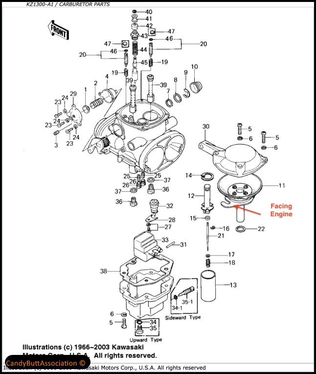 The factory service manual indicates the slide keeper should be facing the engine.