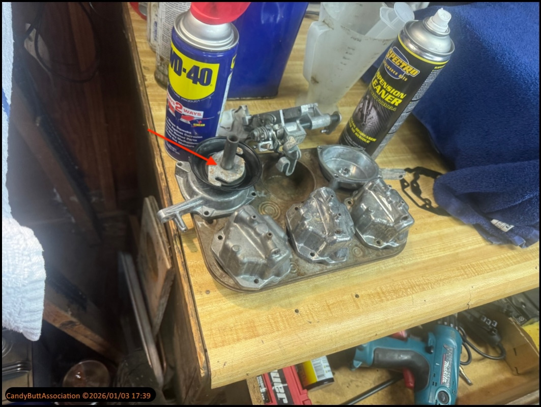 Slides are working like they should. Whatever is going on it's on all 3 carb bodies, as there is fuel pooled in all the intakes, all the plugs are sooty. I'm thinking it's something with starter circuit.