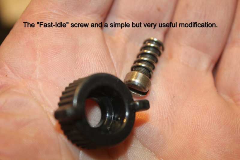 #3 NOTE:When choosing a knob for the fast idle screw mod. it's recommended the dia. not exceed 5/8" to avoid contact with the fuel-tank while operating the throttle. Insulation in the linkage travel area should be removed as well.