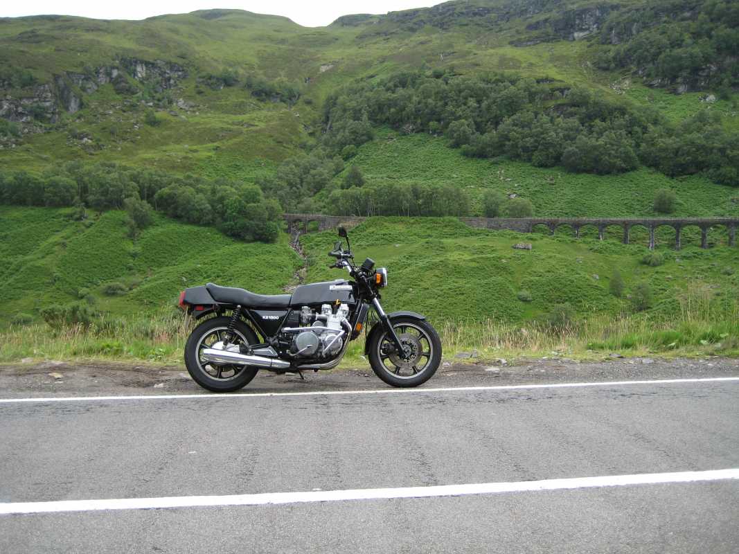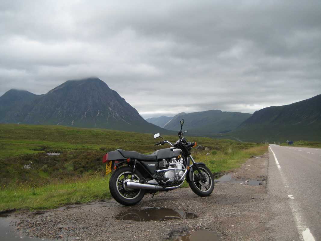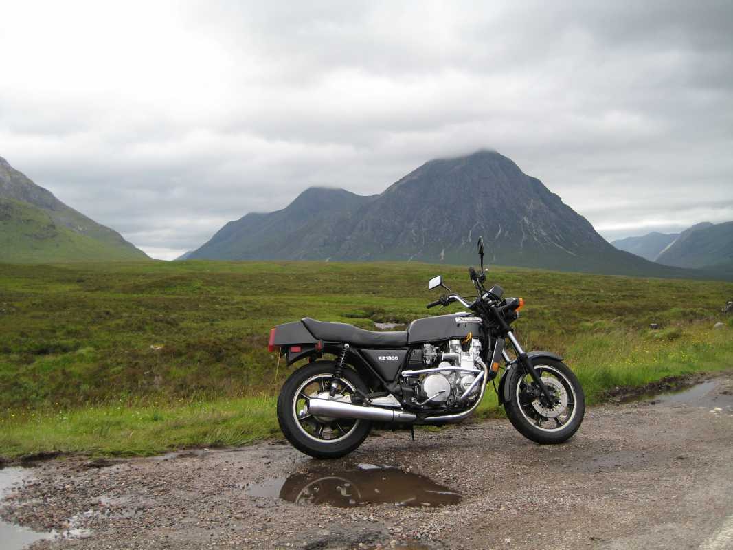 I had a day out on the Z today; I rode from Edinburgh up to Glencoe and back. Stopped for petrol at the Green Welly stop, it’s a well known biker’s halt in Tyndrum. The Z was well admired and I left feeling more than a bit chuffed. This is the longest ride I have had on it so far, and it ran like a Swiss watch all the way. So I am well pleased with the way it is progressing. The weather was typically Scottish, dull and cloudy with occasional heavy showers. I took a few photo’s but the weather conditions were not the best.