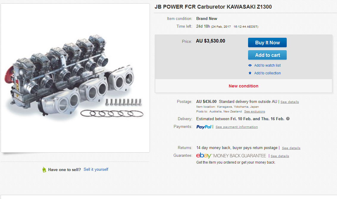 Joking aside, those same carbs are on sale for 3600 Euro (here in Europe) which I think is a little over Au $ 5000 - makes them look a bargain :S :S