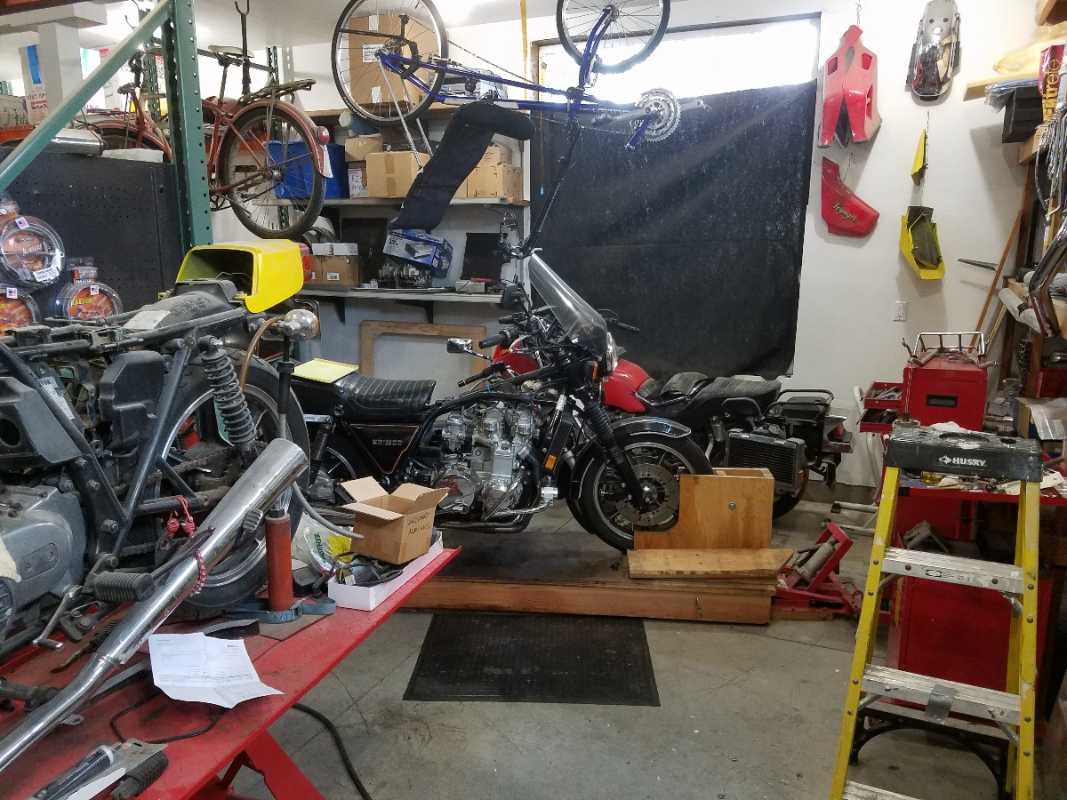 9 years 1 week ago - 9 years 1 week agoquote - "I have a large garage attached to my house. It's 3-1/2 car bay wide and the outer bay is 50 feet deep. Square footage is 1360 sq. ft. It's my garage for the family vehicle, the 3/4 ton truck, my other baby,my Porsche 928 and the KZ1300. It's also the workshop for the vehicles and the bike. I do all of the vehicle maintenance since I'm also a licenced auto technician. In my career in the nuclear power plant I was a ticketed pipefitter/welder and a machinist/fitter. So in my workshop at home I have a stick/tig welding machine and a very small 6"x21" metal lathe"