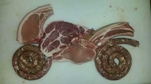 Well Done ?! "Bringing home the bacon" takes on a whole new meating. Looks like the rear wheel is already uncoiling. Wheely popular at the Dog-parks, I'll bet !