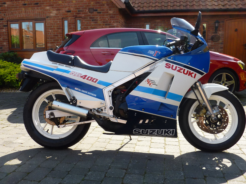 This bike was imported into the UK from Japan 8 years ago: the RG400 was never sold outside Japan, think it was designed to meet their local laws and regulations - basically its a sleeved down RG500 square four (pistons must be size of a thimble) - but my, when it hits 6k RPM upto 9K it screams like an old race bike - cant believe 400cc can feel so rapid :woohoo: :woohoo: