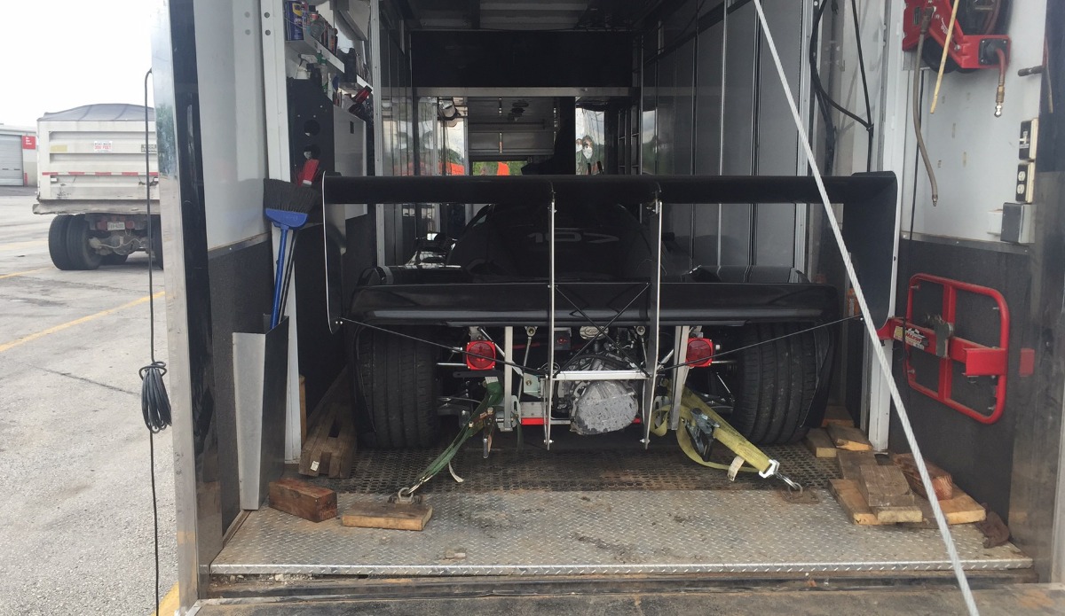 The trailer is setup specifically for Sprint Cars. Carries 3 cars, push vehicle and spares. Has car lift and engine hoist. Cabinets for everything including spare engines. It was another "Used" purchase, but works out great for us. The road cars are TIGHT between the cabinets. There are no cabinets the back 5' or so - so the Sprint Car rear tires clear easily - front of the Sprint Car is pretty narrow. Only thing I wish for is AC.