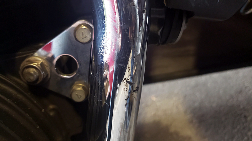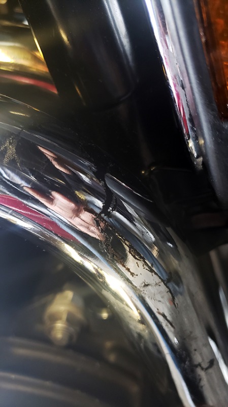 The scratches on the #6 exhaust - I think the answer is coming to me after lots of subconscious processing and some reflecting on the details. I am pretty sure it was a co-worker. A useless guy who can't do much but scammed his way into the company bullshitting, and is taking a huge pay and knows nothing, literally! Plus, he is smoking crack. I am sure he got angry because my name came up when others were complaining about him finally to the top and lots of it came out based on my observation about him, since he was working with me one day. The idiot can't do shit! So he took a tool, I know which, and scraped the pipe where I wouldn't notice leaving work. Criminal scum of the earth and a looser. But what can you expect from someone who talks about spending 15 years in jail because being a thief!?! I have no idea why he is still with us, and how the fuck he got hired. The guy doesn't shut up, always wired! Sad thing is, he never got caught red handed. And I can't take bullshit forever. Too bad I will have to remove the whole right exhaust to have it chrome plated again, if I want it to be pristine. For now, I am leaving it as is. Don't have funds for it now. What a scumbag.