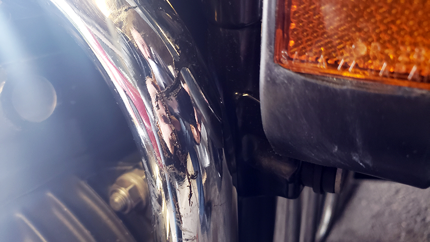Someone took a piece of a rock or brick and damaged the right pipe on my KZ. It was beautifully chromed as everyone knows. Nasty people... Not sure if that's a tenant or a worker or co-worker, as I don't check all on the bike every day or when I go for a ride. A couple weeks ago someone pulled off a couple of chrome skulls from side cover on my other bike. Very disappointing.