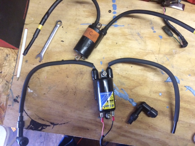 I received the ignition coils and they were right, they are a direct replacement without any modifications. They will bolt right on where the old ones were. Mine were the originals that have the plug wires bonded to the coils. I cut the 2 wires off my old coils where they were soldered and put crimp connectors on them so they slide right on the new coils. I unscrewed the spark plug caps from the old wires and screwed them into the new wires. The new wires are replaceable but were perfect length. Each new coil came with a long plug wire and a short one, so I had to put 2 long ones on one and 2 short ones on another but they all reached just fine. I bolted them on and the bike fired up great. I took it for a ride for 10-15 minutes with no problems. Unfortunately, I am in the process of moving to another province so will be unable to go for a long ride for a while to really see if the stalling issue is resolved. But I'm happy that it's running now since it wouldn't even keep going when it was warmed up before.