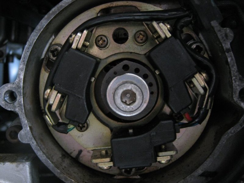 While I had the timing light on it I did check to see if I was getting advance, and at the specified revs it was going to the full advance mark, and I also did a manual check to make sure the advancer was free and moved and did return easily, everything within specs as in the manual, I have a spare plate and pickups, might elongate the holes a bit and try it on the bike, can't hurt